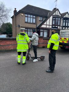 Ten vehicles were seized, including three illegal e-scooters. It’s not currently possible to get insurance for privately owned e-scooters, which means it’s illegal to use them on the road or in public spaces, such as parks, street pavements, and shopping centres. If a privately-owned e-scooter is used in public, it carries the risk of being seized for having no insurance.